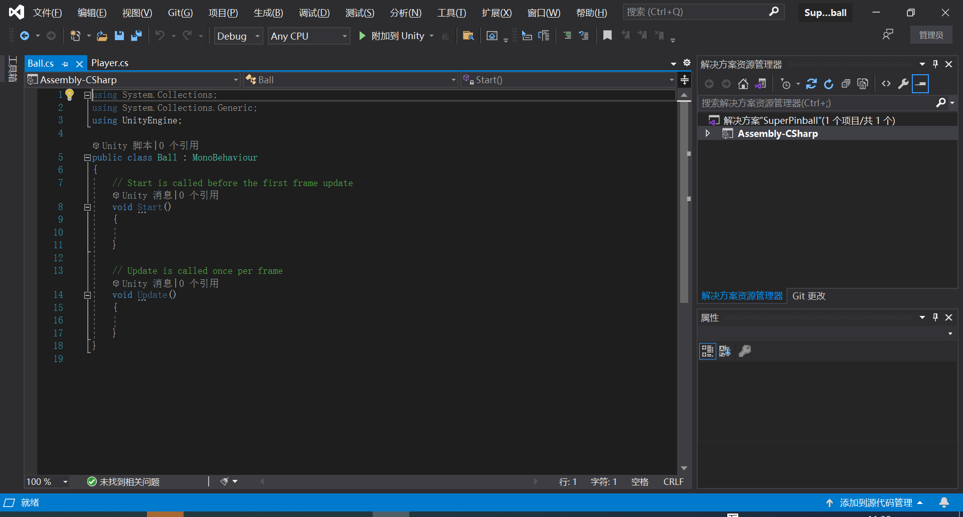 将Ball赋值给Player脚本的Ball变量, 方法是从Hierarchy窗口中拖拽Ball到Inspector->Player(Script)->Ball中: