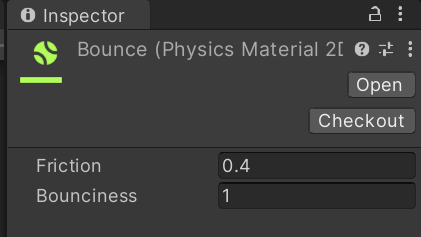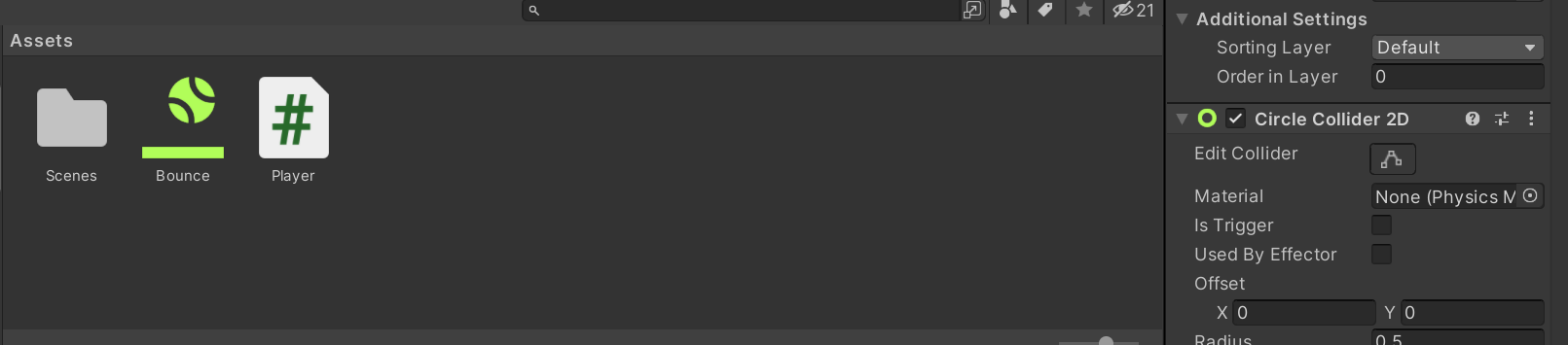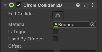 选中Ball角色, 将Bounce材质拖拽赋值给Ball的Circle Collider 2D->Material项: