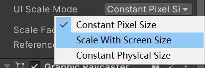 修改UI Scale Mode 为“Scale With Screen Size”: