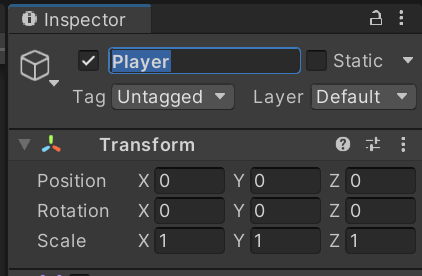 此时,Hierarchy窗口中,将多出一个"Player"角色: