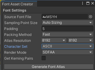 之后都设置好之后点击Generate Font Atlas就可以生成字体文件。