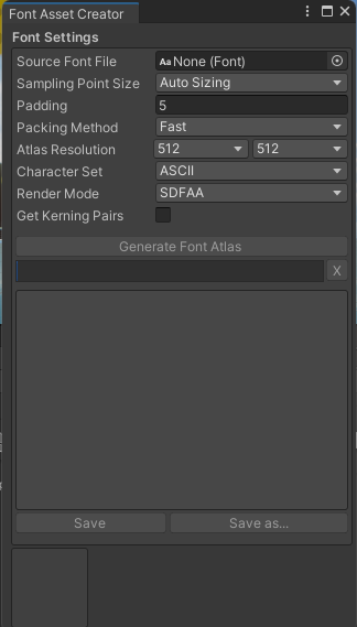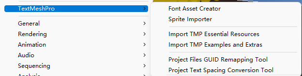 Asset Store导入Textmesh pro,之后选择Window——TextMeshPro——Font Asset Creator
