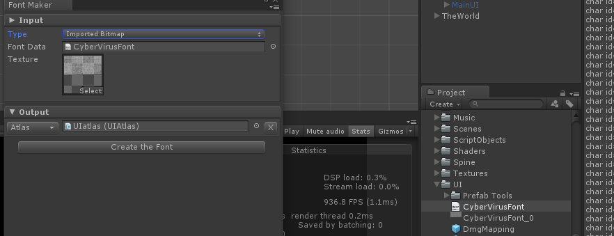 然后通过ngui的Font maker,讲图+数据文件导入。字不多的话以前都习惯和UI图集打在一起,减少2张不同图集交叉引起的draw calls。