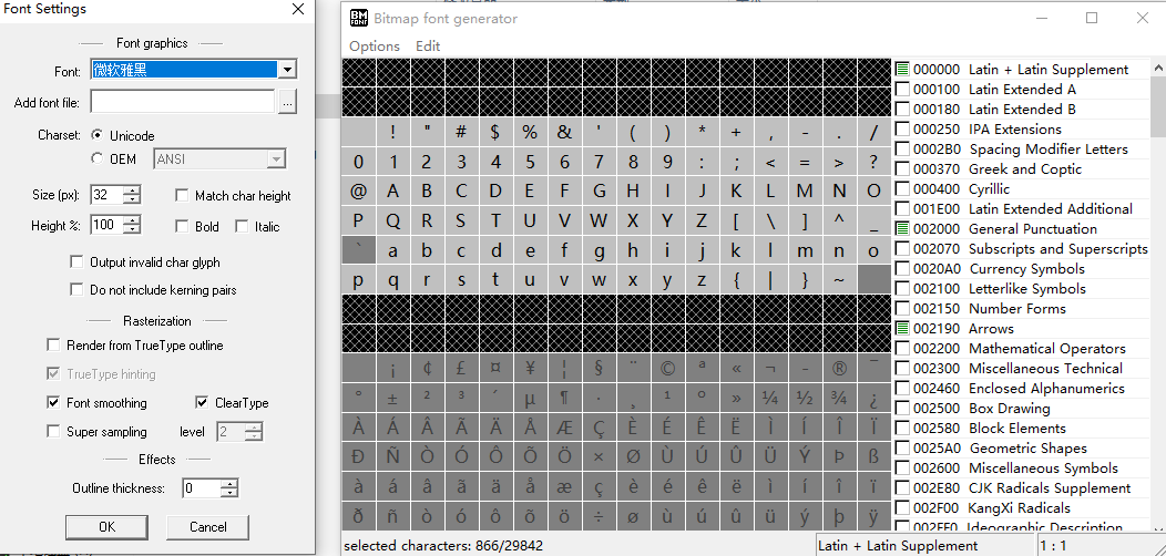 搜资料+回想,才想起是要一个叫bitmap font的第三方工具导出字符集图片+数据文件。