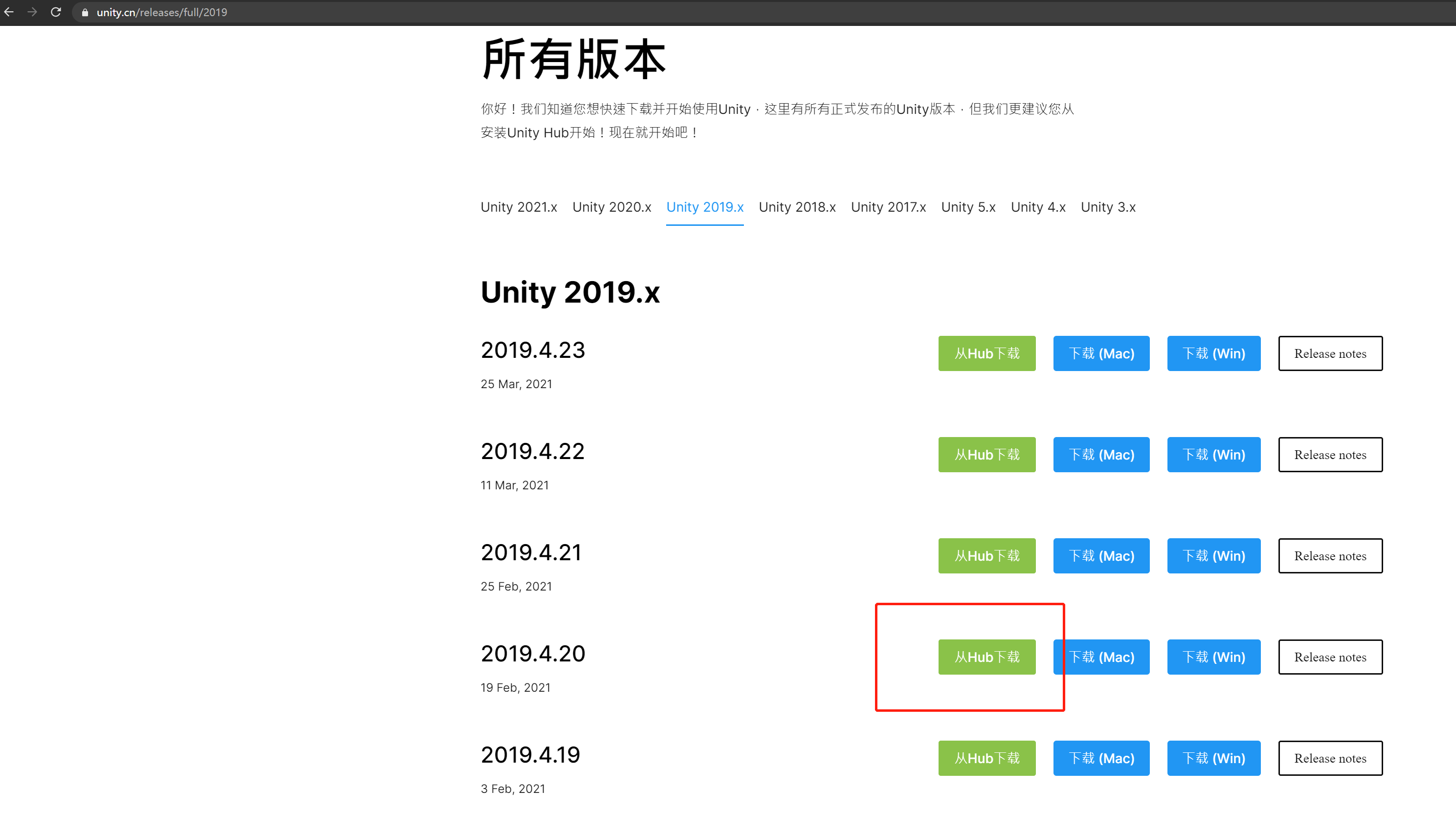 然后我们下载一个我们喜欢的unity版本
