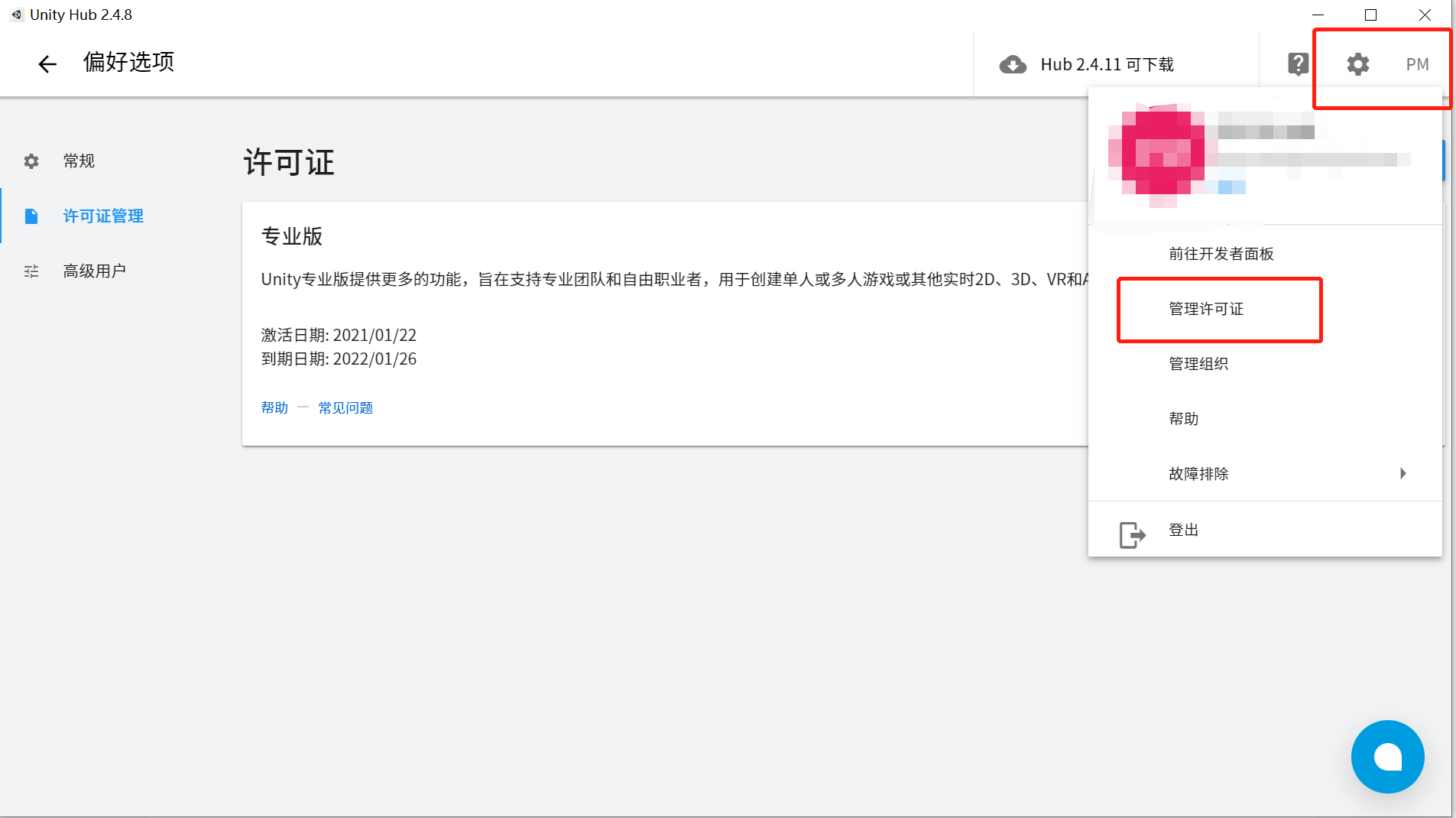 这里可以查看管理许可证:
