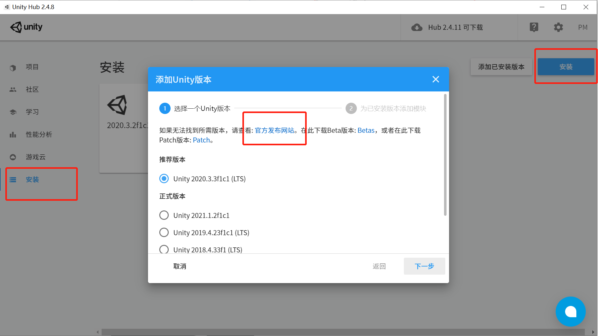 小tips:点击“从hub下载”前先把unity hub这个安装小窗口关掉有时会更便于弹出下一个安装窗口