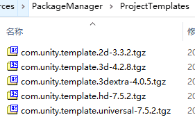 4、现在可以尝试基于一个已有模板tgz来创建咱们自己的模板。核心是要修改里面的package.json和ProjectData~文件夹中的内容。