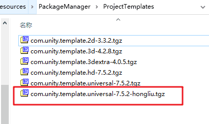5、大智这基于com.unity.template.universal-7.5.2.tgz,修改里面的package.json文件如下:
