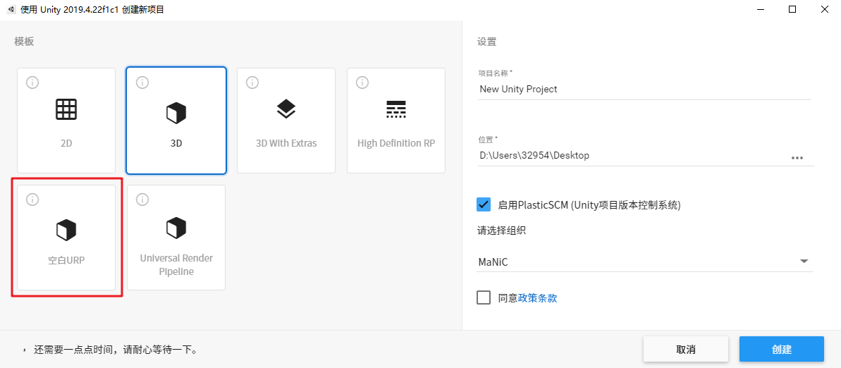 9、打开UnityHub,使用对应版本Unity创建工程时就能看到创建新项目模板了!