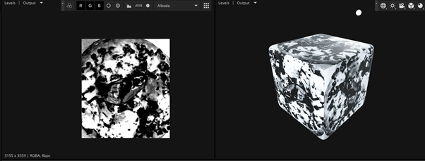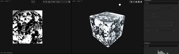 接着我们继续创建Levels节点,调节节点高光阴影以及中间调的参数,增加对比度使白色更白黑色的区域更黑。