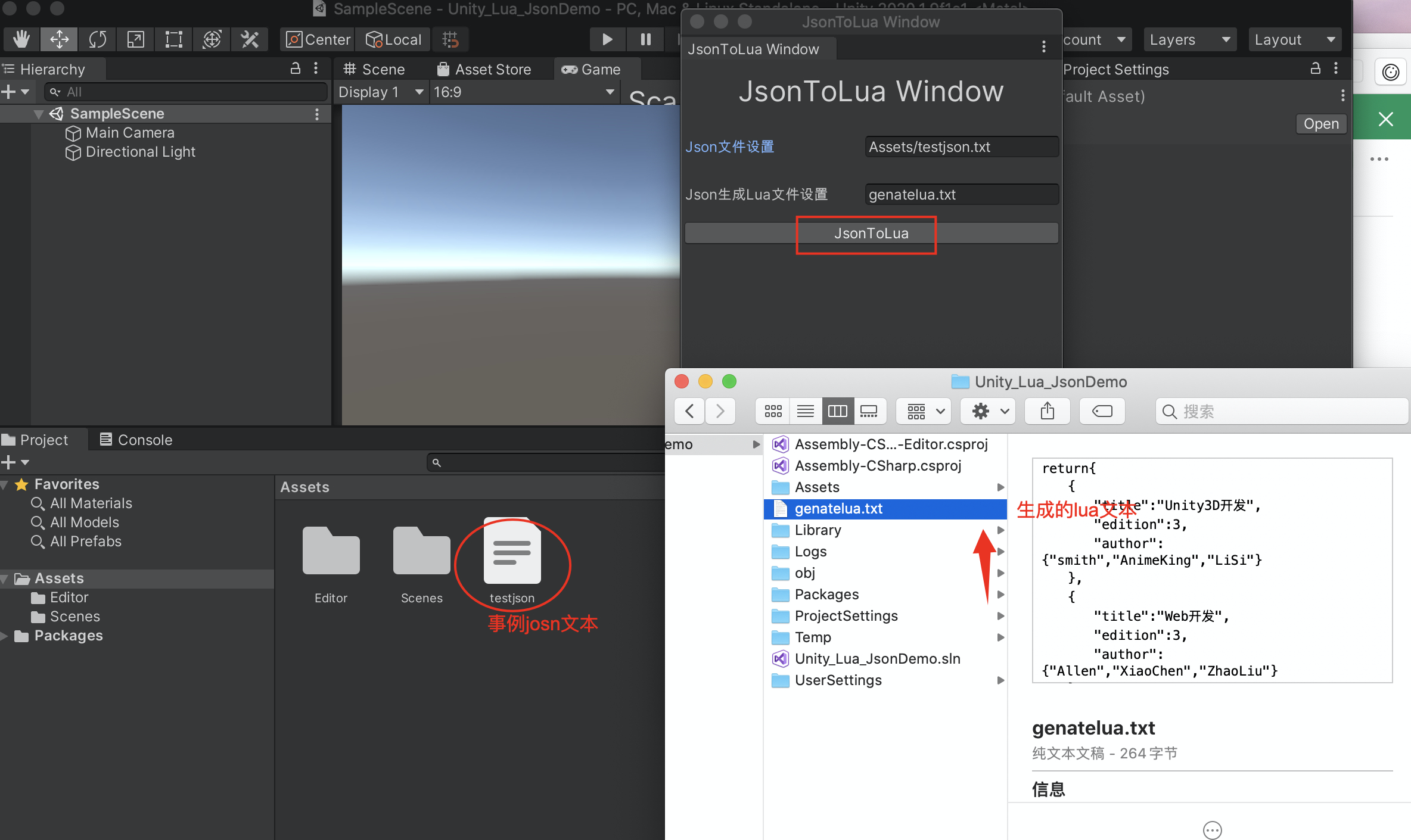 1、在Unity 引擎中可以直接新增Editor 文件夹,然后JsonToLuaWindows.cs 组件类。
