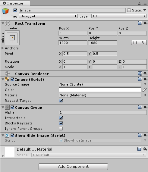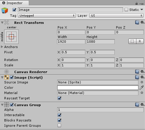 2.在Image组件上添加Canvas Group组件,如下图所示