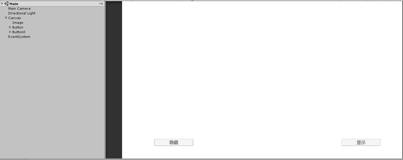 1.新建项目,在场景中新建一个Image组件和两个button,如下图所示: