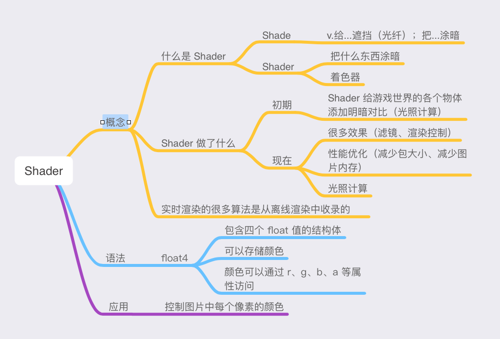 其中 把...涂暗 更贴近我们想要的意思。 所以:Shader 这个单词从字面上理解,就是把什么东西涂暗。