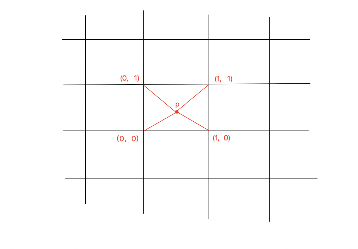 2D Value Noise与1D Value Noise的原理类似,区别在于2D Value Noise在平面上做插值,如图: