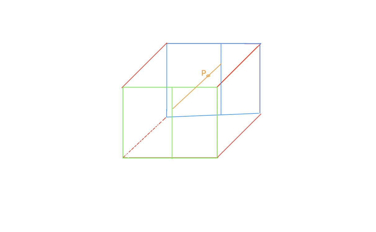 上图是3D立方体,其中绿色线框与蓝色线框分别为立方体的前面与背面,绿色线框与蓝色线框部分的Value Noise值可通过2D Value Noise的插值方式求取,最后通过mix( cell(green), cell(blue), smoothstep(0, 1, fract(z)))求得;示例代码如下: