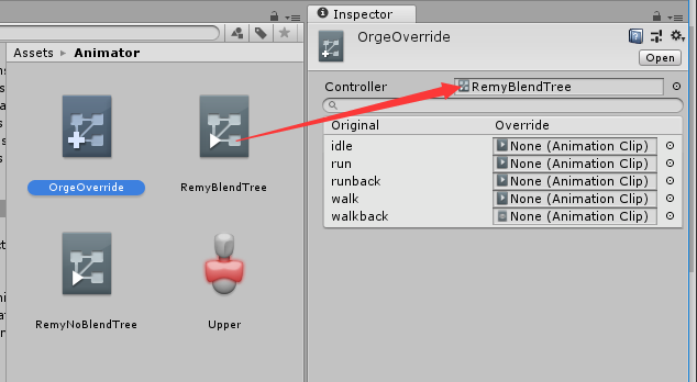 最后Override Controller可以赋值给Animator组件的Controller。