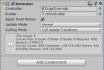 :Animator组件的Avatar属性可能需要替换为对应模型的Avatar。