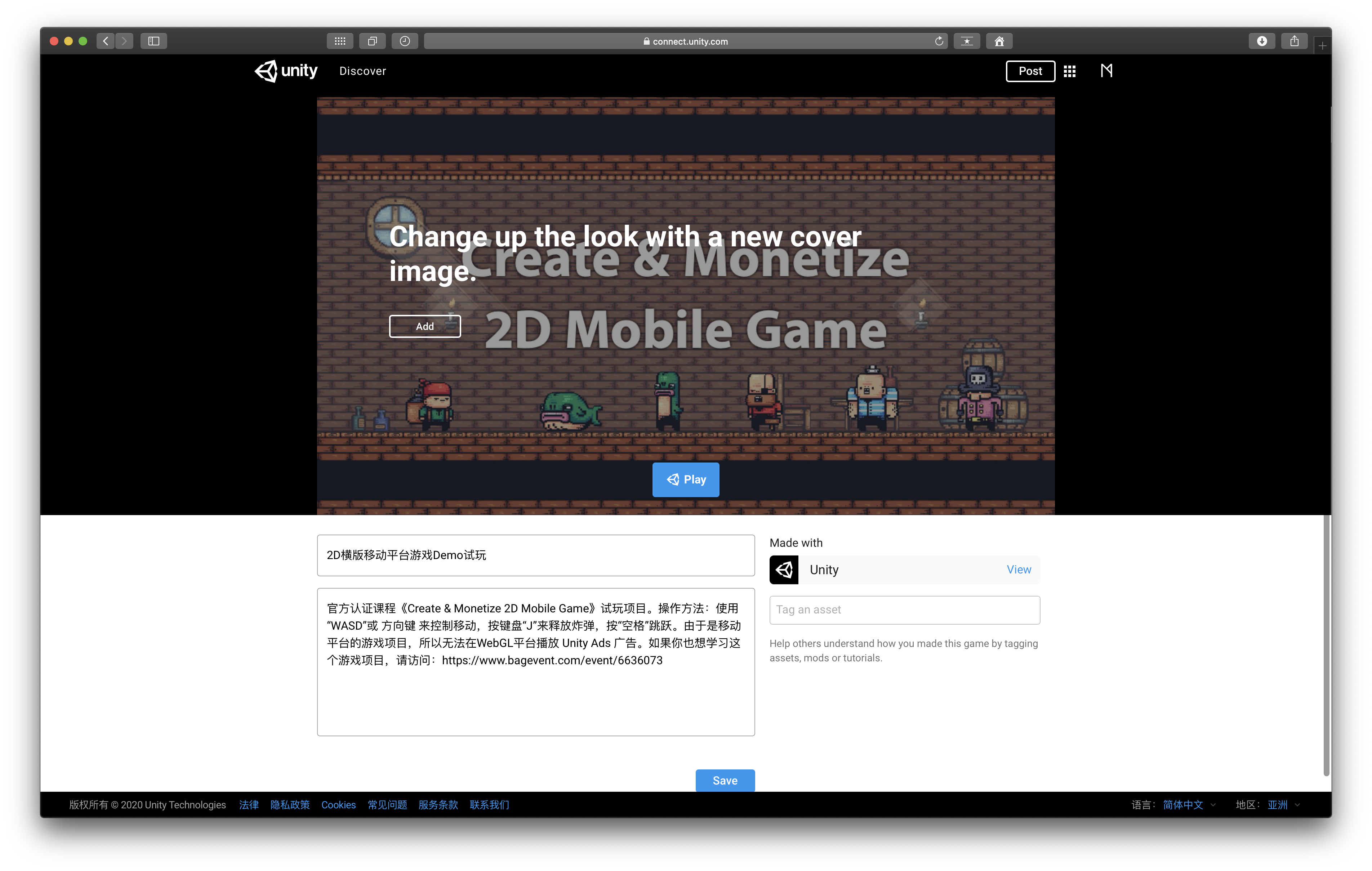 至此你就成功上传好了 WebGL 平台的游戏了!可以把网址分享给你的朋友试玩啦!