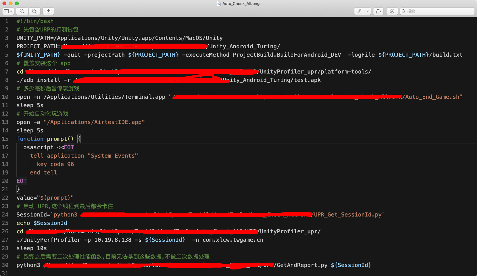 3:介绍从 shell 脚本Auto_Check_All.sh 运行到打包GetAndReport.py 的步骤.首先是 Unity 打包策略.也就是第一步,形成打包自动化,真正的 Jenkins 打包界面是需要很多参数形成的,此流程仅仅为了方便,因此做简化.需要注意的是,此打包方式一定是开发模式.(请移步官网 https://docs.unity3d.com/Manual/CommandLineArguments.html)