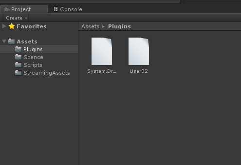 1.新建项目,在项目中新建一个名称为Plugins的文件夹,将System.Drawing.dll和User32.dll文件放进这个文件夹中,如下图所示: 2.在项目中新建StreamingAssets文件夹,将一张图片放入此文件夹中,如下图所示: 3.开发打印Paint.cs脚本,此脚本的作用是开发打印基本功能,脚本开发完成后挂载到场景中,脚本代码如下所示: `using System.Collections; using System.Collections.Generic; using System.Drawing; using UnityEngine; using System.IO; using UnityEngine.SceneManagement; using System;