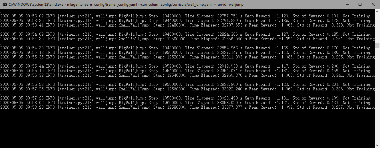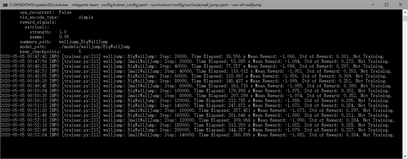 mlagents-learn config/trainer_config.yaml --curriculum=config/curricula/wall_jump.yaml --run-id=walljump