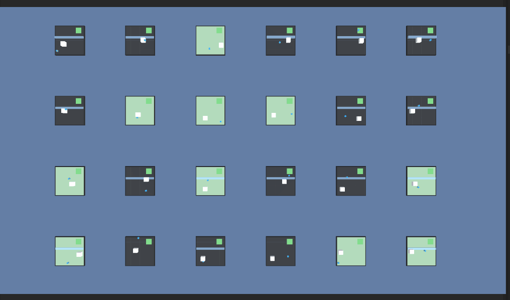 由图可以看到已经训练9个小时了,但平均收益还是-1.1左右,在Unity中也是失败的多,没有什么改观。
