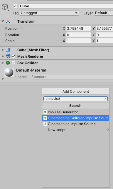 Cinemachine Collision Impulse Source 根据碰撞或触发器产生震动信号。