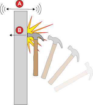在下图中,振动主轴(A)与锤子撞击墙壁(B)时的行进方向一致。