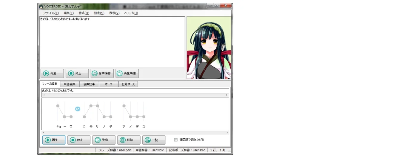 - 准备VOICEROID读取出声音文件。 例 きょうは、くもりのちあめです。あすははれます.wav ※对象的文件名,只能是平假名和片假名。