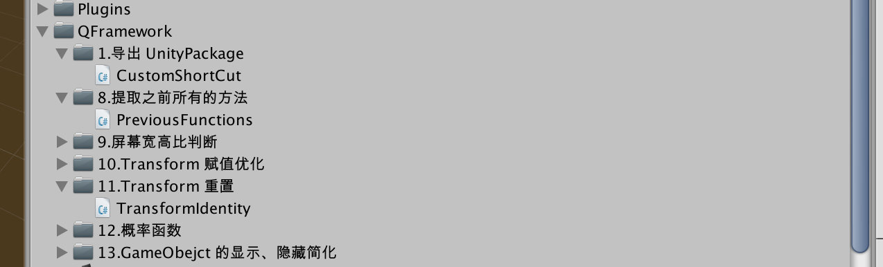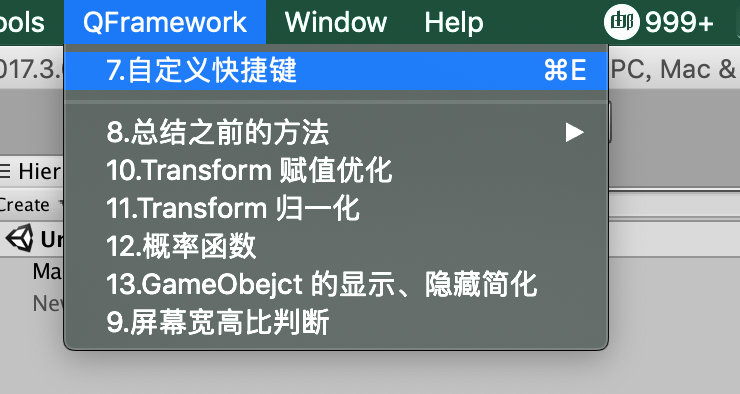 其实菜单中的名字,还是不是合理,虽然这个示例我们是为了学习自定义快捷写下的,但是如果时间长了,我们看到上图的菜单栏还会懵一下。其实它的名字,应该叫做导出 UnityPackage。