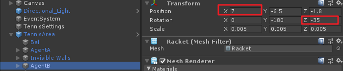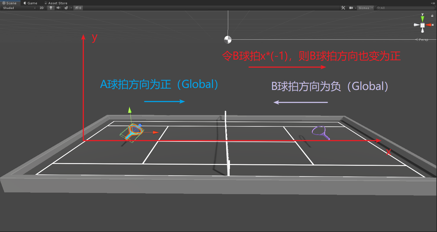 小小提一下,在最后“限制球拍向前移动时不要越过网”部分,如果以agentA为例,此时invertX=false,m_InvertMult=1,则当满足