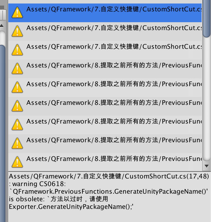 我们先给这五个方法加上,然后观察下 Unity 的控制台的警告。