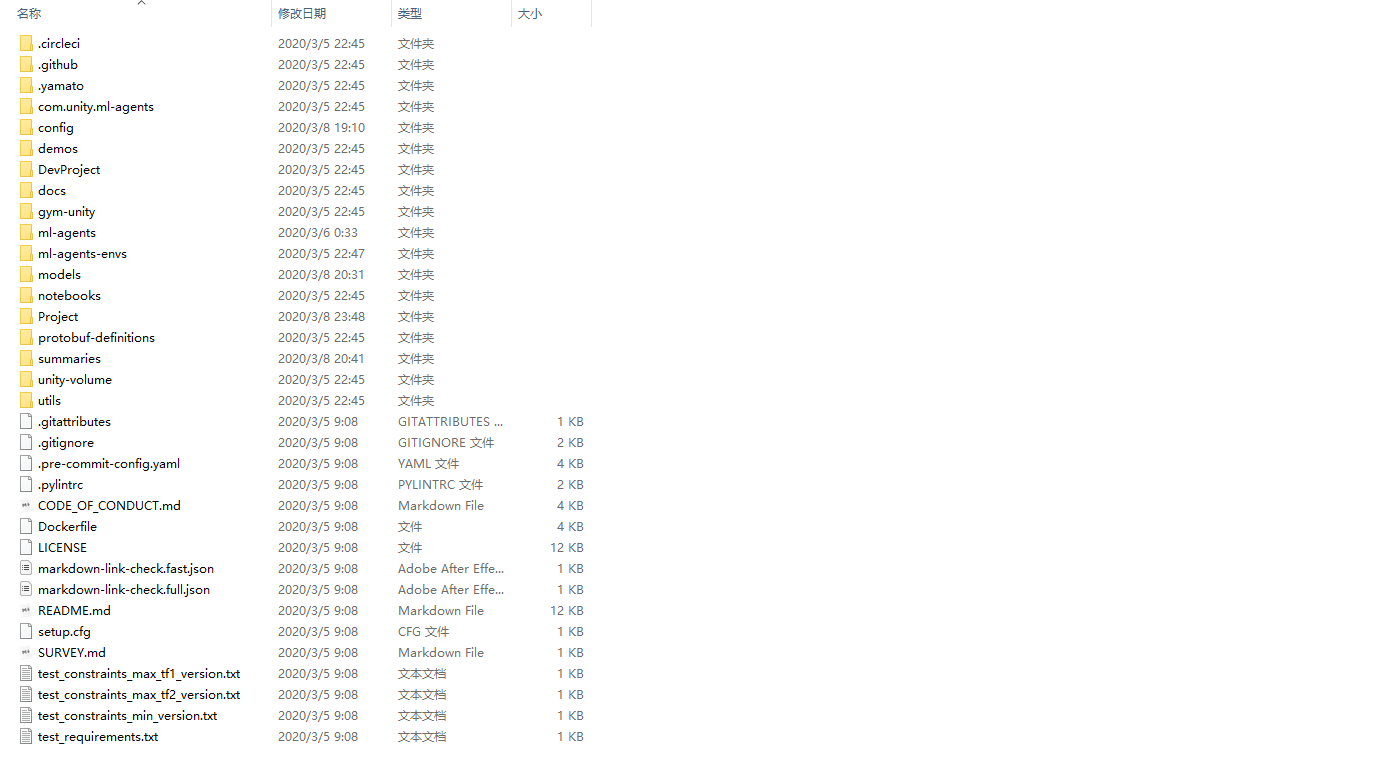 然后,用同样的方法下载ml-agents文件架下的库,命令如下: