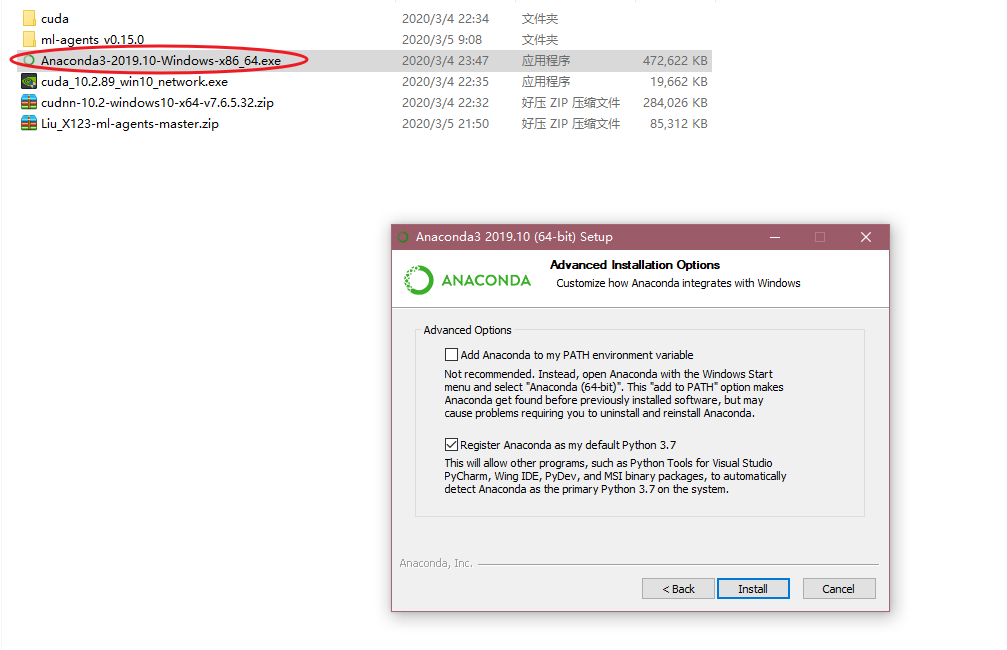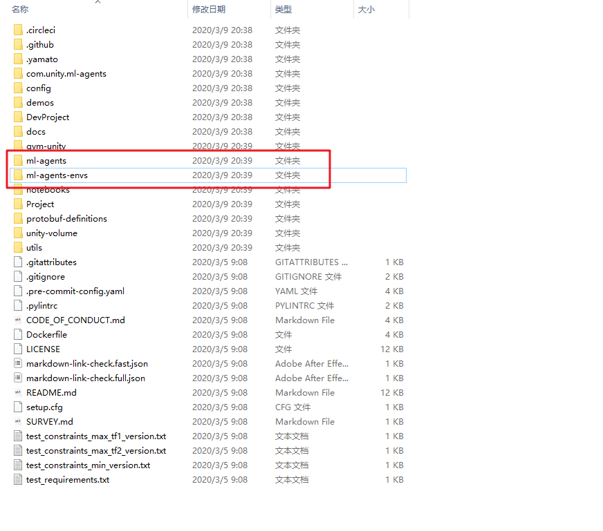 然后,下面需要恢复ml-agents需要的库,这里需要装两个文件夹里的东西,分别是ml-agents-envs和ml-agents。