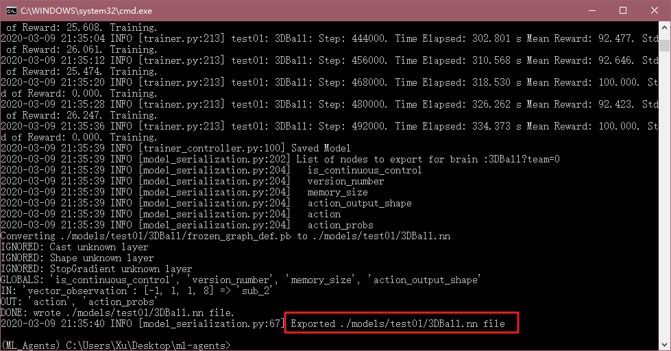 这里就是训练出的模型,可以替换Unity中的模型文件,试试看自己训练出的数据。