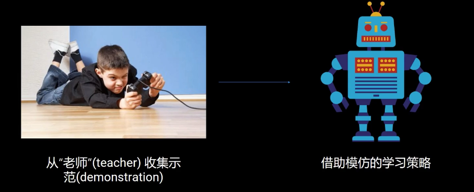 - 模仿学习:通过示例(demonstration)学习;没有奖励的必要;实时交互;代理(Agent)在任务中趋向“人一样的行为”。