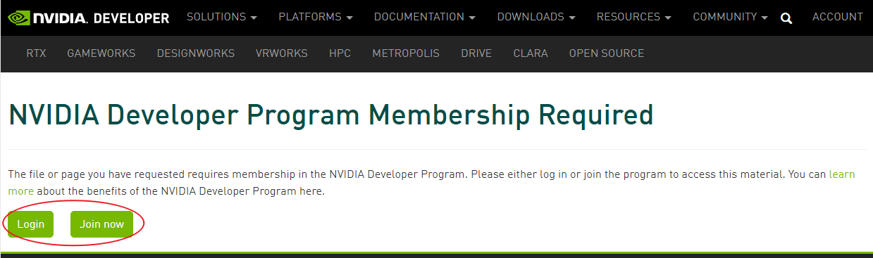 点击后,会出现以下画面,这里我们需要有一个NVIDIA的账号,有的话直接登录,没有的话花2分钟注册一个登录即可。