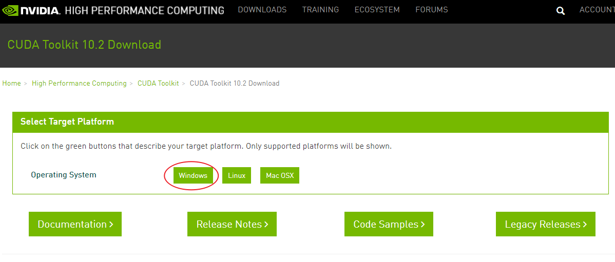 再次提醒!!!!我们上面的图片上虽然下载的是CUDA v10.2,但是实际上我们要用的是CUDA v10.0版本的,要对应我们Tensorflow的版本才行!!!希望大家对应文字来下载配置,随机应变,不要只是看图了,我们这里用CUDA v10.0哦,不是10.2!!!!!!