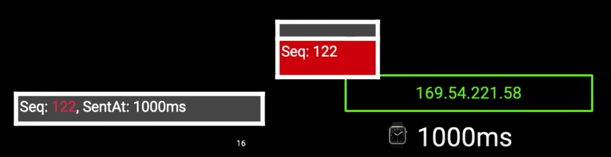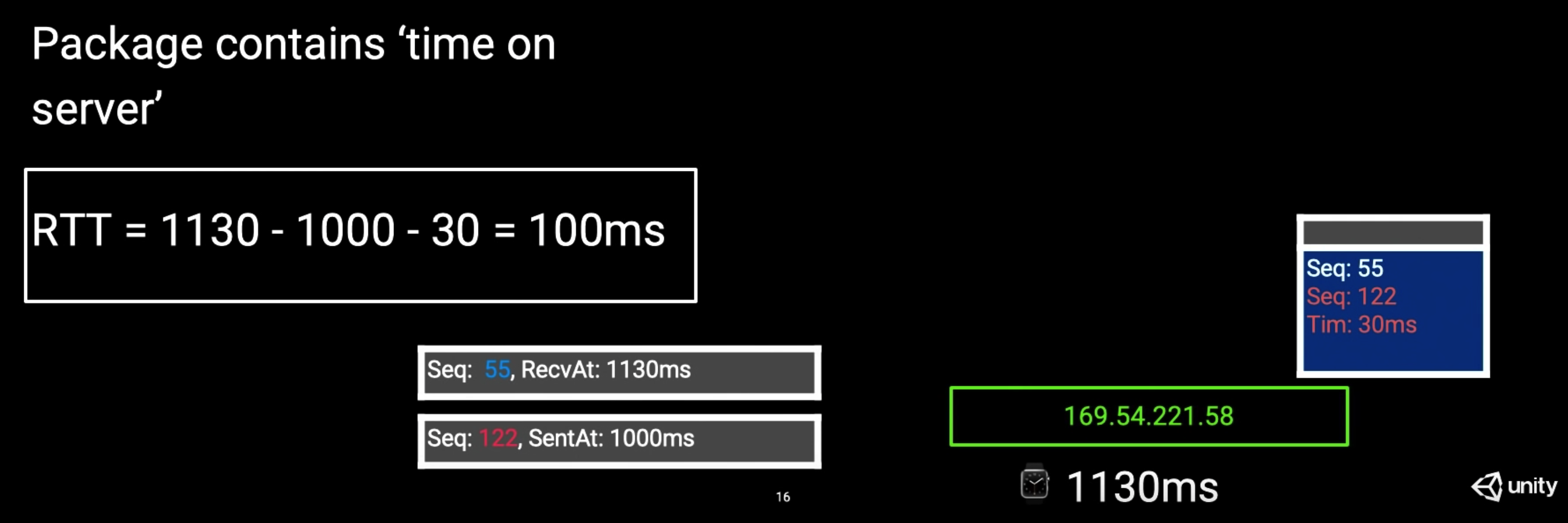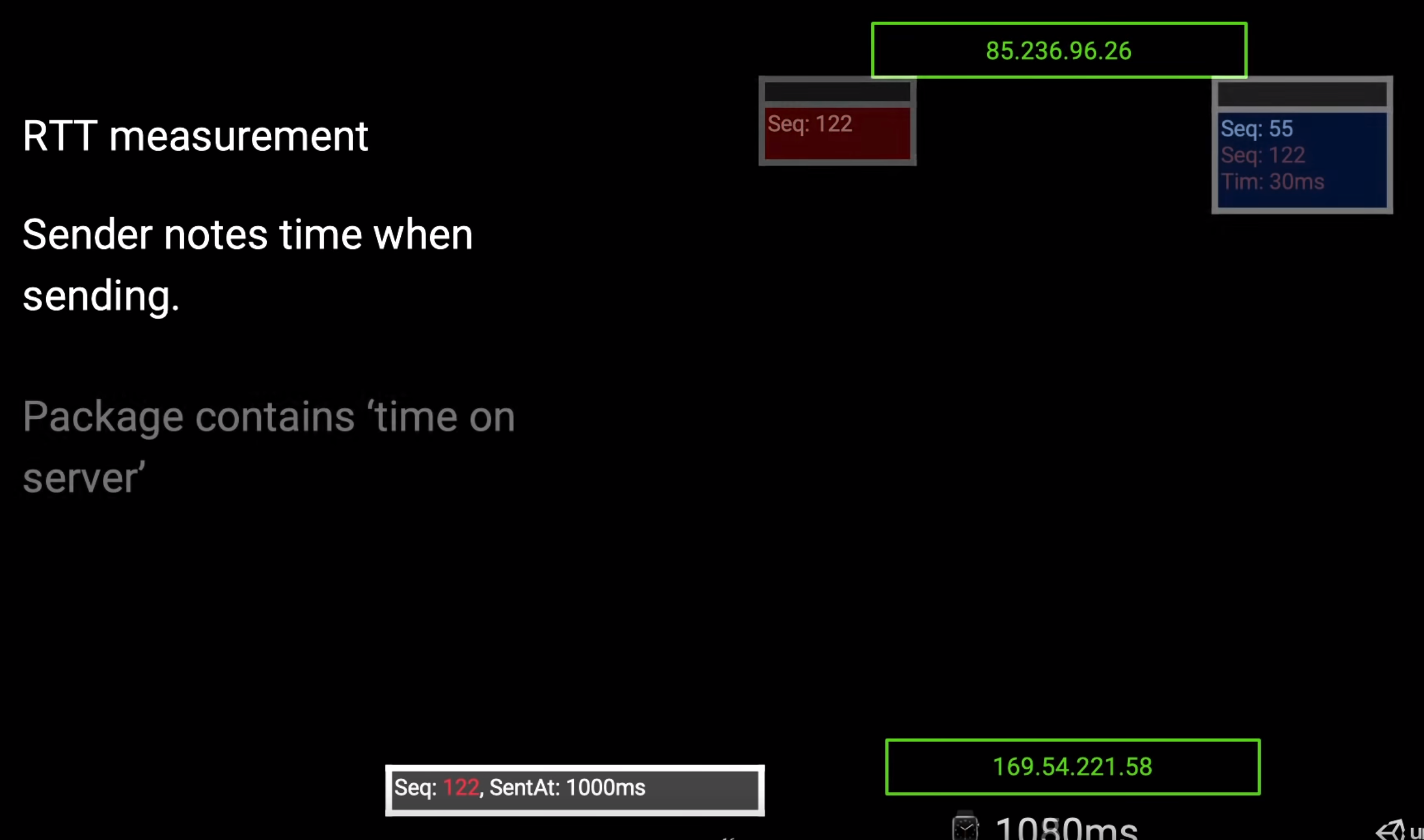 数据包在传输工程中是有延迟的,处理数据包如果以收到的时间点来处理结果就不对了,所以数据包需要做延迟补偿,客户端在1000毫秒的时候像服务器发送了一个数据包。
