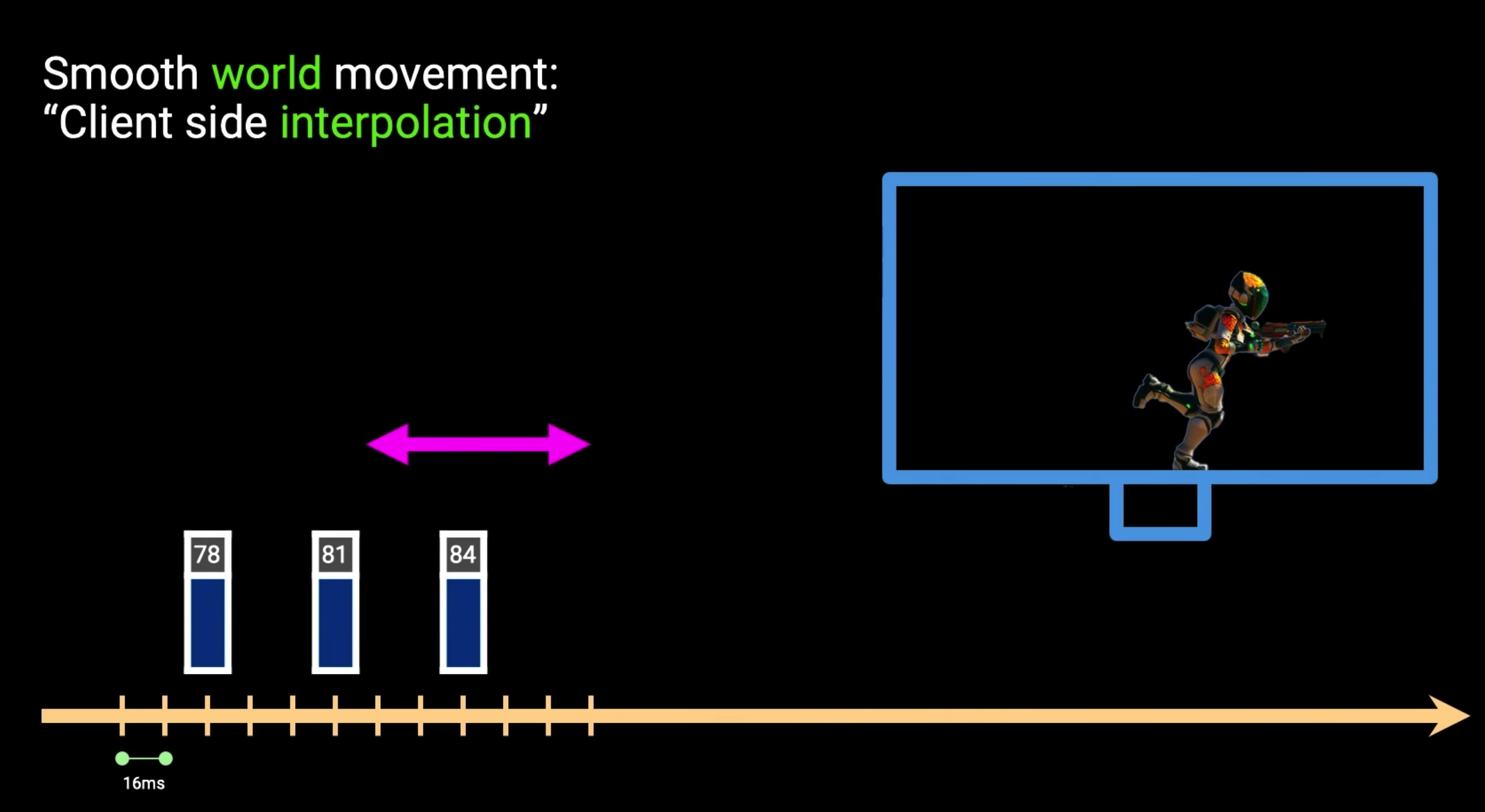 最后客户端根据还原出的数据包进行每帧的插值还原游戏画面