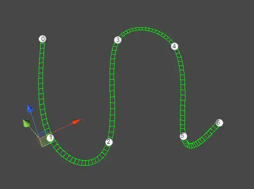 CinemachinePath中定义了一系列的路径点,定义在世界空间中。每个路径点都有位置、切线和翻滚角度。在路径点之间使用贝塞尔曲线插值,来获得平滑、连续的路径。