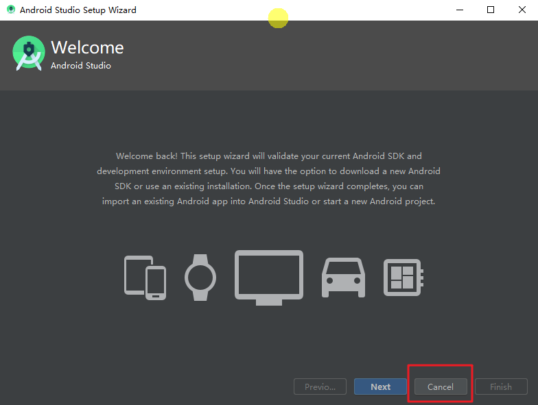 下载安装后,运行Android Studio,可能会弹出如下的框: