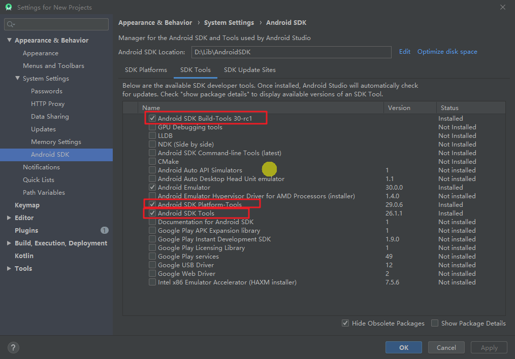 如果需要手动设置,记得Android SDK要设置为比如build-tools的父目录,例如我的是