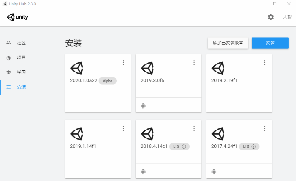 以使用UnityHub安装的Unity版本2019.3为例,Windows系统默认路径在: