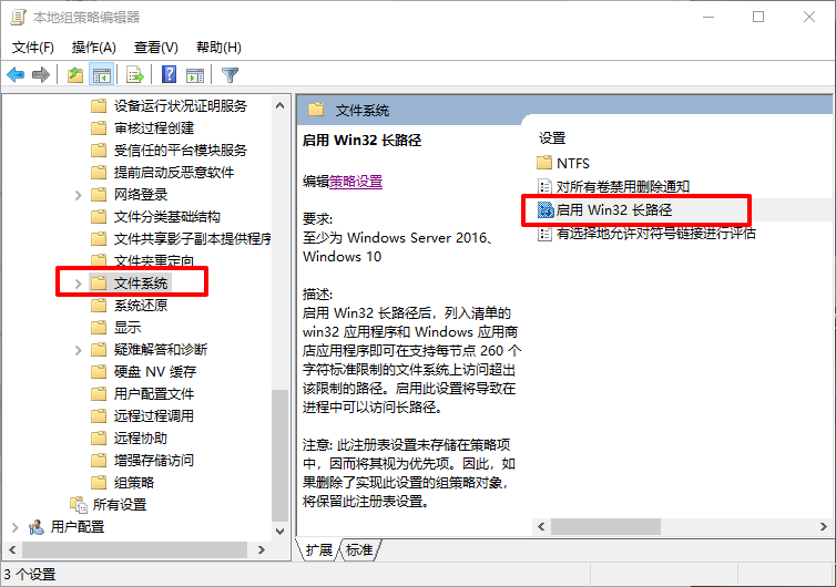 本地计算机策略>计算机配置>管理模板>系统>文件系统>