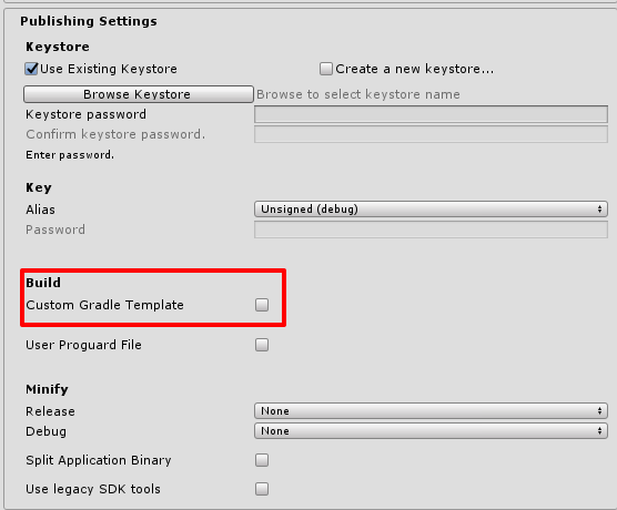 可以使用aliyun的maven库解决,流程如下: 1、勾选Player Settings里面的Publishing Settings中的Custom Gradle Template。如下图:
