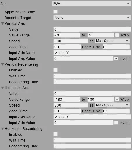 Wait Time 等待时间。如果在水平轴上未检测到用户输入,则相机将等待几秒钟,然后再进行重新居中。