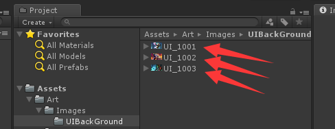 将需要进行AssetBundle打包的图片按照“UI_”的前缀命名,然后根据图片的父目录来设置AssetBundle的名字。如下所示